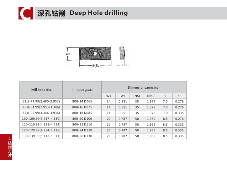 CORODRILL 800-14D/ 16D/ 18D/ 20D/ 22D/ 24D/ 26D 支撐墊 鉆頭制造商 用于深孔加工的硬質合金鉆削刀片