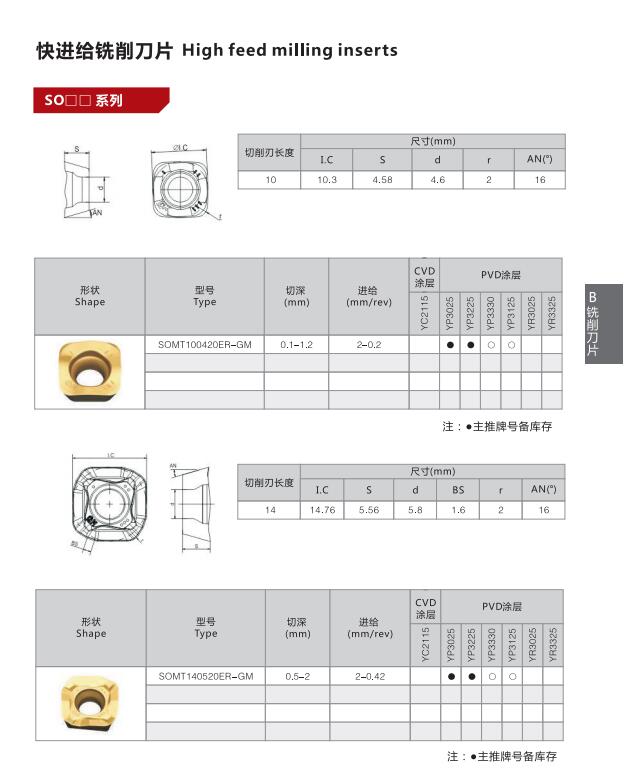 OEM 用于表面銑削和快速進給銑刀硬質合金刀片 SOMT140520ER